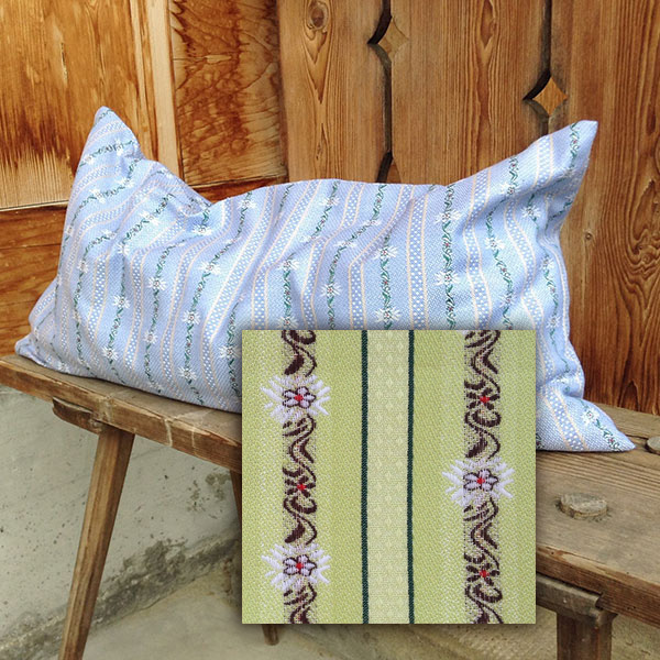 In 5 verschiedenen Edelweiss-Stoffen erhältlich. Anzug 100% Baumwolle. Innenkissen Bettbarchet mit Reissverschluss.