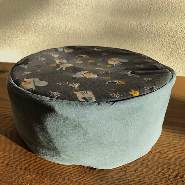 Der Kinderhocker dient als Sitzerhöhung am Tisch, als Sitzgelegenheit am Boden und dank des waschbaren Anzuges aus robustem Baumwollstoff auch draussen im Rasen.