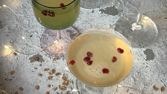 Env. 1 dl de champagne, de prosecco, de schweppes ou de l'eau minérale gazeuse