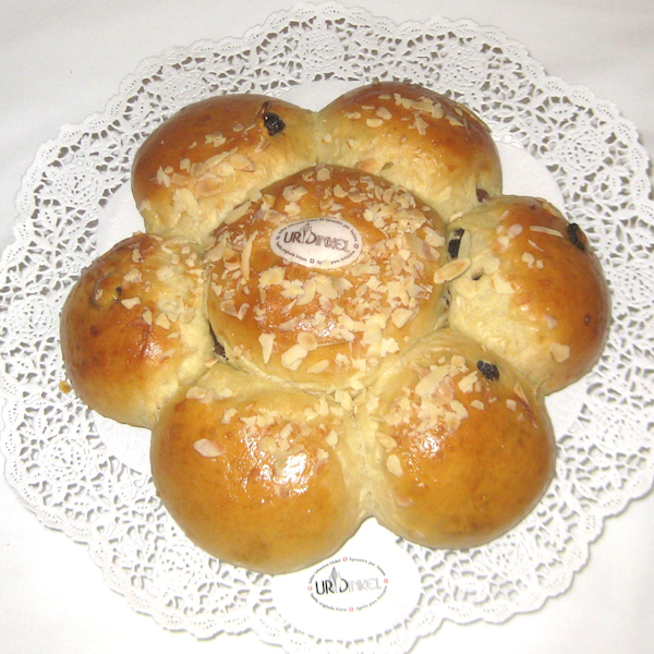 UrDinkel-Weissmehl, Butter laktosefrei, Sultaninen, Eier, Zucker, Mandeln, Vollmilchpulver laktosefrei, Zitrone, jodiertes Speisesalz, Backhefe