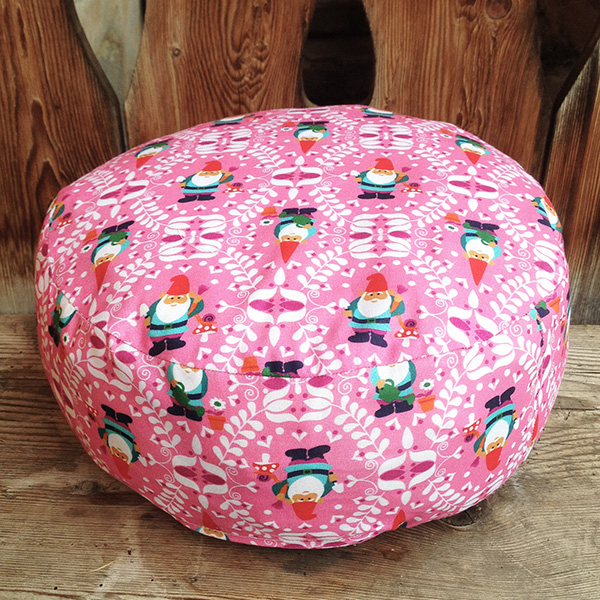 La hauteur du pouf mesure environ 10 cm et le diamètre est de 30 cm.
