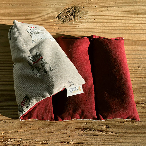 UrDinkel-Körnerkissen Beige Katzen, Rückseite Rot uni